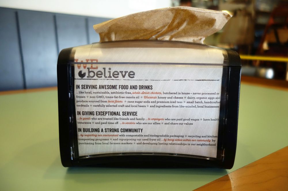 Antibiotic-free, cage-freeand humanely-raised chicken. Includes a mix of breasts, drumsticksand thighs. Served with honey butter and corn muffins.